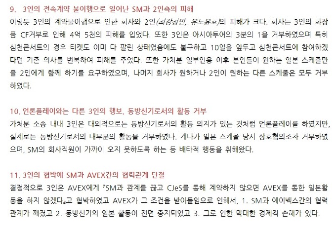 - 이와 같은 이유로 ‘SM이 3억 가불도 안해주는 배려도 없는 회사라서 함께 일하지 못하겠다’ 는 주장 역시 의미가 없음을 알 수 있습니다.